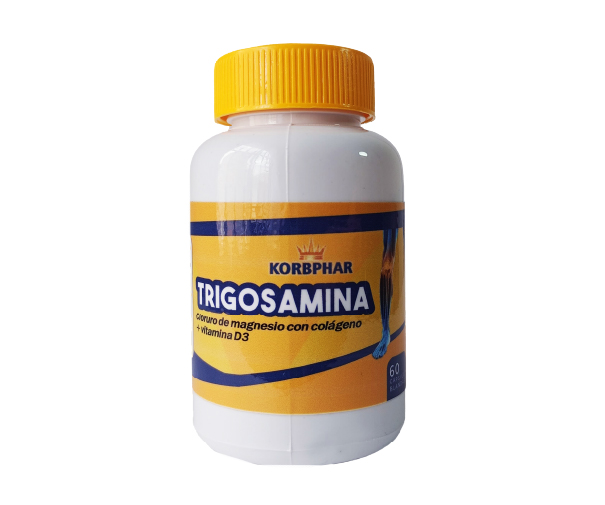 Trigosamina Korbphar es un suplemento especializado que combina cloruro de magnesio, colágeno y vitamina D3, diseñado para promover la salud ósea y articular. Su fórmula ayuda a fortalecer los huesos, mejorar la elasticidad de los tejidos conectivos y mantener una óptima movilidad articular.